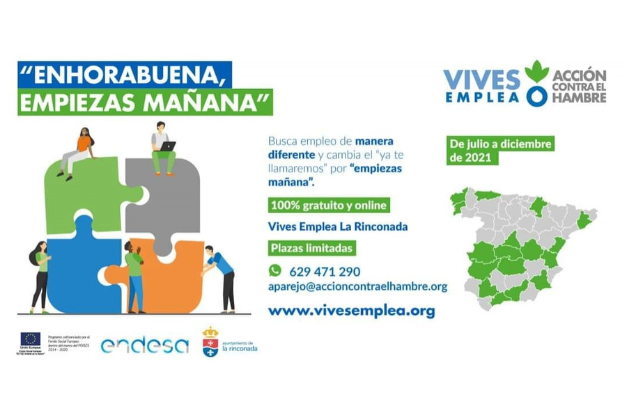 La participación en Vives Emplea es gratuita. Para más información e inscripciones escribe a aparejo@accioncontraelhambre.org o el teléfono 629 471 290.