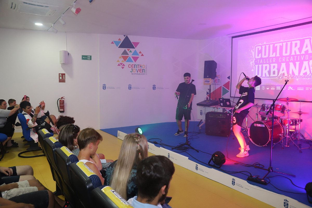 La clausura, organizada por los propios participantes para poner en práctica lo aprendido, se ha celebrado en el salón de actos del Centro Joven la Estación, con una batería de conciertos como muestra final del taller. Actuaron ‘Kelus’, ‘H.A.D.E.S.’, ‘You Focush’, ‘Kapi’, ‘Paula Sorte’, ‘Fifez’, y como artistas invitados ‘Nitro Giovane’, ‘Sinserie7’, ‘Vicky Giraldez’ y ‘Tarugo Rock’.