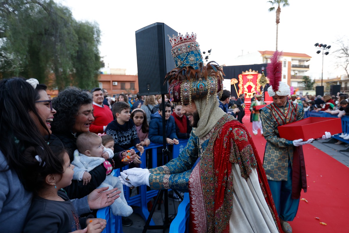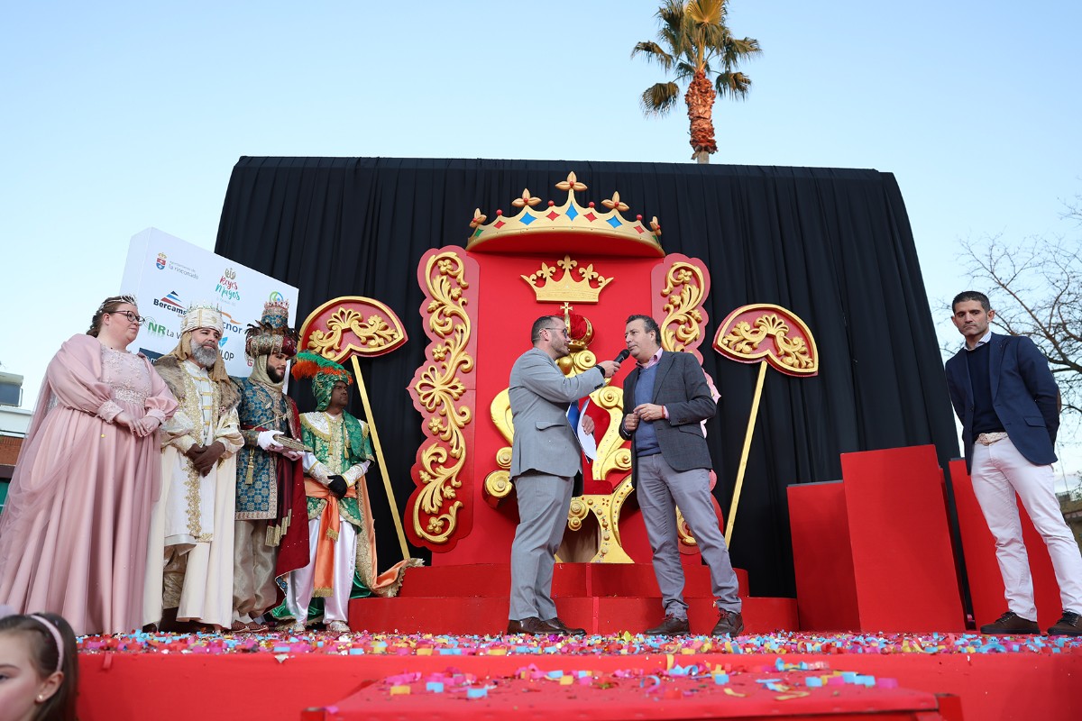 Acto seguido, se procedió a coronar a los representantes de los Reyes de Oriente. Melchor, representado por David Sálezmar, productor musical y uno de los grandes exponentes de la compañía ‘Aura Flamenca’; Gaspar, representado por Alberto ‘El Romero’, bailaor y responsable de la escuela de danza que lleva su nombre; y Baltasar, representado por Antonio Romero, arquitecto técnico de formación, organizador de grandes eventos vinculados a la música de profesión y vinculado a la tradición del rey Baltasar desde su más tierna infancia. Los tres destacaron que son “mágicos y lo ven todo”, al tiempo que aseguraron que los niños y niñas de La Rinconada se habían portado muy bien y, por tanto, serían recompensados al despertarse el próximo 6 de enero.