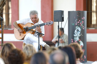 El reciente Medalla de Oro de la Provincia de Sevilla, Antonio Carrión, inundó el jardín con los acordes de su guitarra con el poema ‘Guitarra del mesón’.