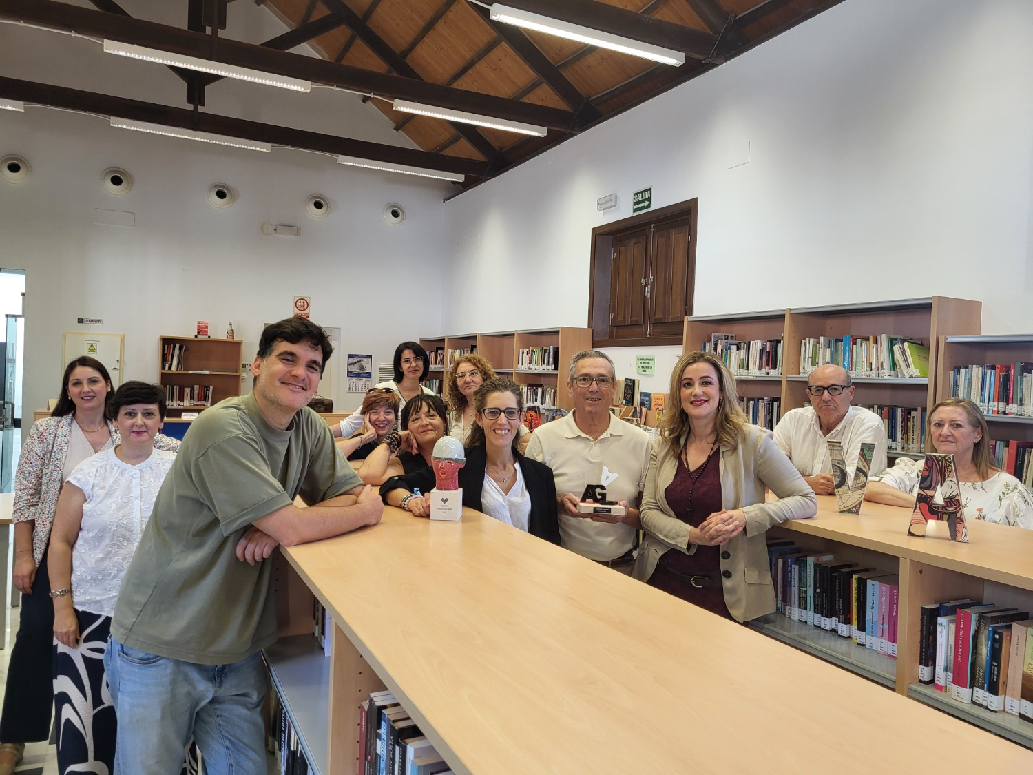 “El festival internacional Estación de las Letras ha sido reconocido con el Premio Nacional de Fomento a la Lectura por el Ministerio de Cultura y este reconocimiento, sin duda, también es gracias a nuestras bibliotecas municipales, que no son meros depósitos de libros, sino entes vivos que cada año trabajan una programación muy completa que abarca todos los sectores de población. Forman parte del Pacto por las Letras de La Rinconada, un proyecto que busca situar al municipio como ciudad protectora de los libros y la lectura”, ha referido la I Teniente de Alcalde y delegada de Cultura, Raquel Vega, que ha reunido al equipo del área de Cultura, del que forman parte las bibliotecas, para celebrar esta efeméride. Acompañándolos ha estado Julio Muñoz Gijón ‘Rancio’ que, en el día de hoy, ha mantenido un encuentro literario con alumnado del IES Miguel de Mañara, dentro de la parada otoñal de Estación de las Letras.