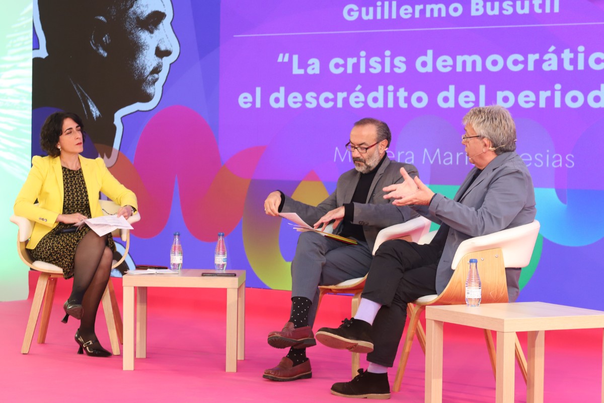 La última de las mesas se ha titulado ‘La crisis democrática o el descrédito del periodismo’ y ha contado con Jesús Marchamalo que ha desarrollado gran parte de su carrera en Radio Nacional de España y RTVE, Guillermo Busutil, periodista, escritor y gestor cultural, crítico de arte en el suplemento Cultura’s de La Vanguardia y María Iglesias, columnista y reportera de elDiario.es y escritora.