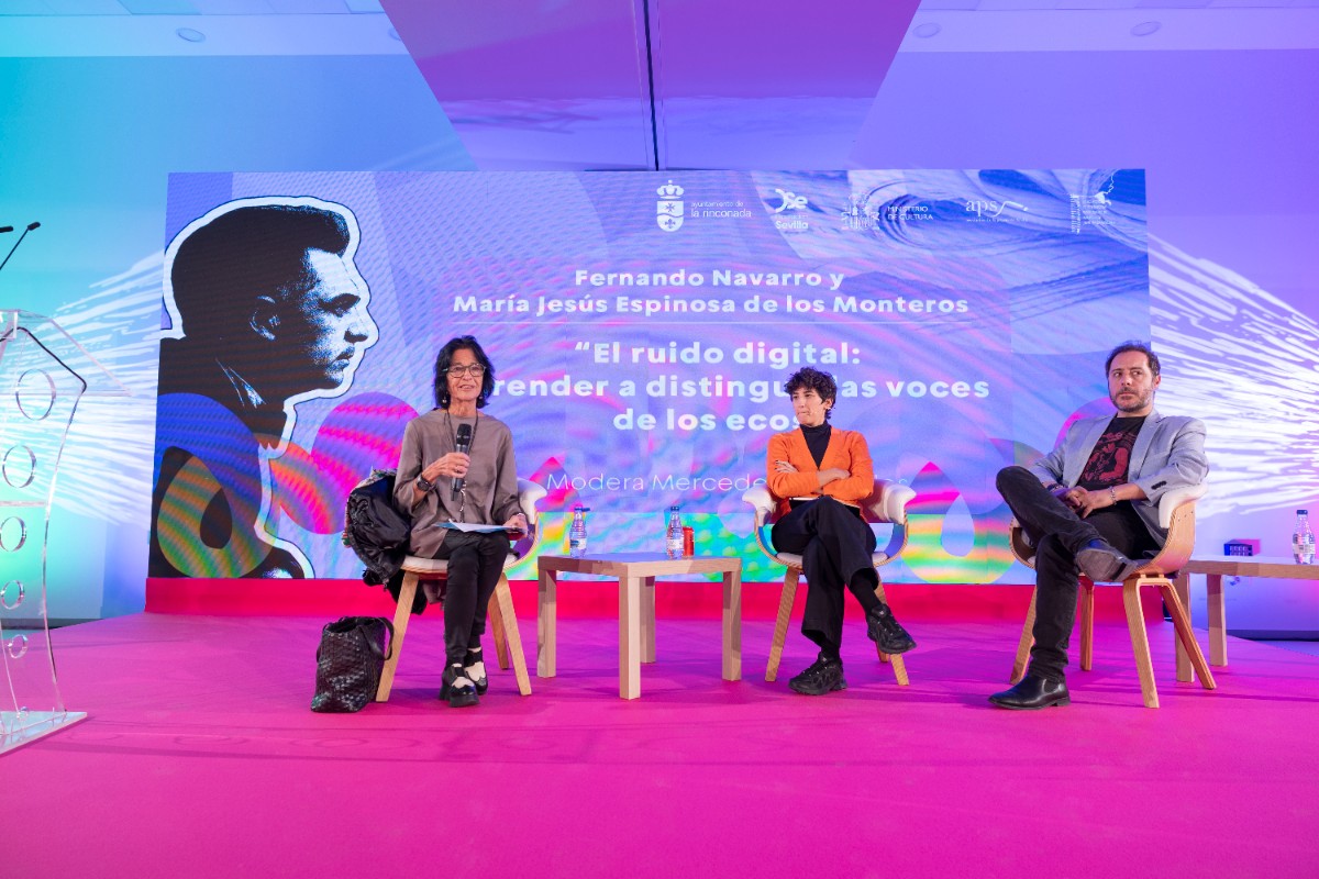 Ha finalizado este primer día con la segunda de las mesas ‘El ruido digital: aprender a distinguir las voces de los ecos’, moderada por la periodista y escritora, miembro del Consejo de RTVE, Mercedes de Pablos, con la participación de Fernando Navarro, redactor cultural especializado en música y colaborador de El País Semanal y diferentes medios; y María Jesús Espinosa de los Monteros, miembro del consejo rector del Premio Gabo, confundadora de elextrarradio.com y colaboradora habitual de El País y la Cadena Ser.