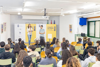 El joven escritor no hizo la típica ponencia, él prefirió entrar en dinámica de entrevista con los alumnos: “Prefiero contar a través de vuestra curiosidad en vez de soltaros aquí cosas que no os interesen”.