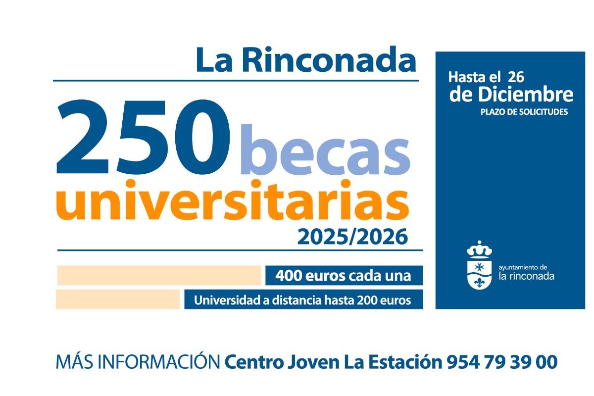 El área de Educación del Ayuntamiento de La Rinconada abre plazo para solicitar las ayudas al transporte y adquisición de material de estudio, de los y las estudiantes universitarias que, afincadas en La Rinconada, pretendan cursar estudios universitarios durante el curso académico 2025-2026.