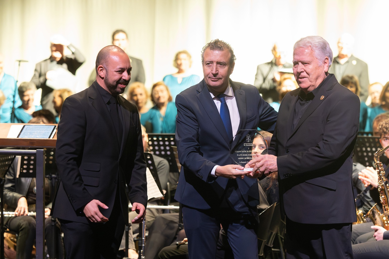 La Villa ha acogido este concierto en la que la agrupación ha celebrado sus más de cuatro décadas de trayectoria, donde se ha rendido homenaje a los diferentes directores de la Coral y a personas vinculadas a la misma en esta onomástica, en un emotivo acto que ha contado también con la Banda Municipal Cristo del Perdón de La Rinconada