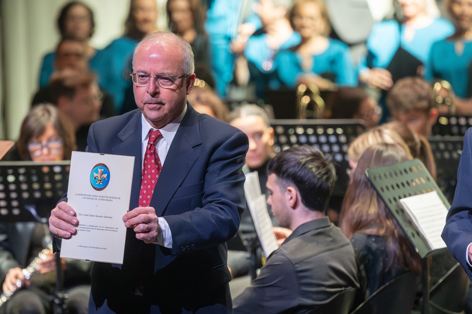 En la segunda parte del acto, ha tomado la palabra José Eladio Navarro para contar la historia de la música en La Rinconada. Se ha estrenado el pasodoble ‘Julio Páez Cano’ de Manuel Jesús Navarro y se ha interpretado ‘Adestes Fidelis’ en la versión coral de Páez Cano; ‘Carmina Burana’ de Carl Orff; ‘Coros de Nabuco’ de Verdi; para terminar con ‘Rinconada Flor de Lys’ de Páez Cano y José Lérida.