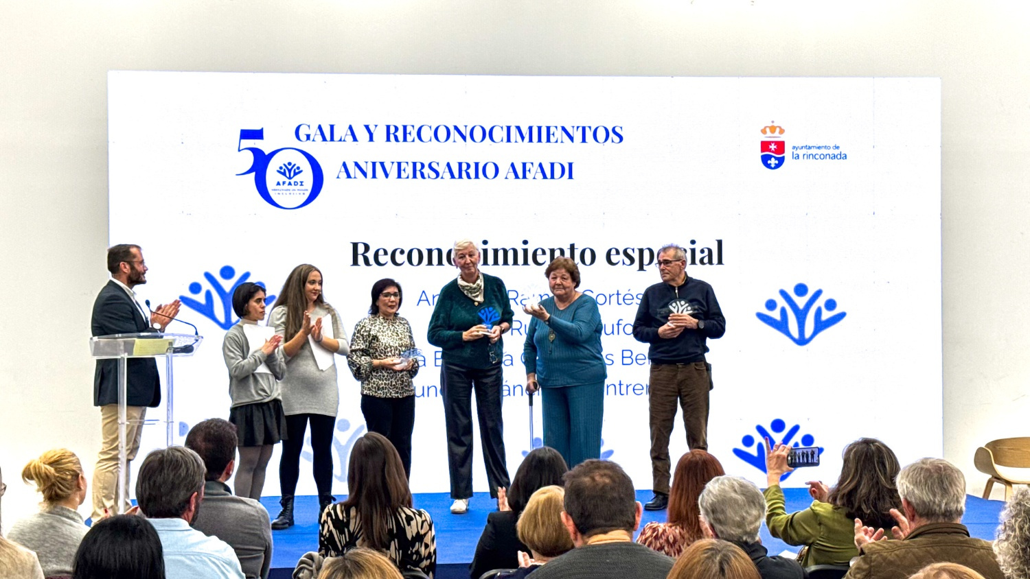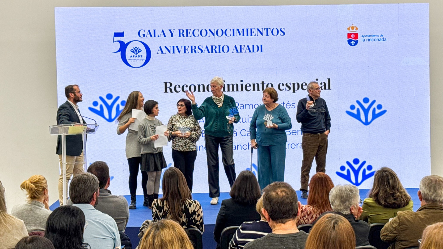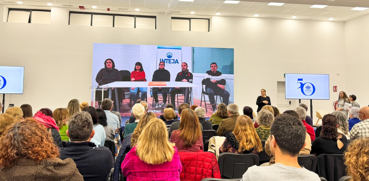 Antes incluso de que se pronunciara la primera intervención, un vídeo proyectado sobre el escenario puso palabras a lo que AFADI ha significado y sigue significando: inclusión real, vida independiente, autonomía, accesibilidad, participación, respeto, empoderamiento, igualdad, oportunidades. Conceptos que no son lemas vacíos, sino pilares construidos con constancia, muchas veces contra corriente, durante 50 años de trabajo silencioso y persistente.
