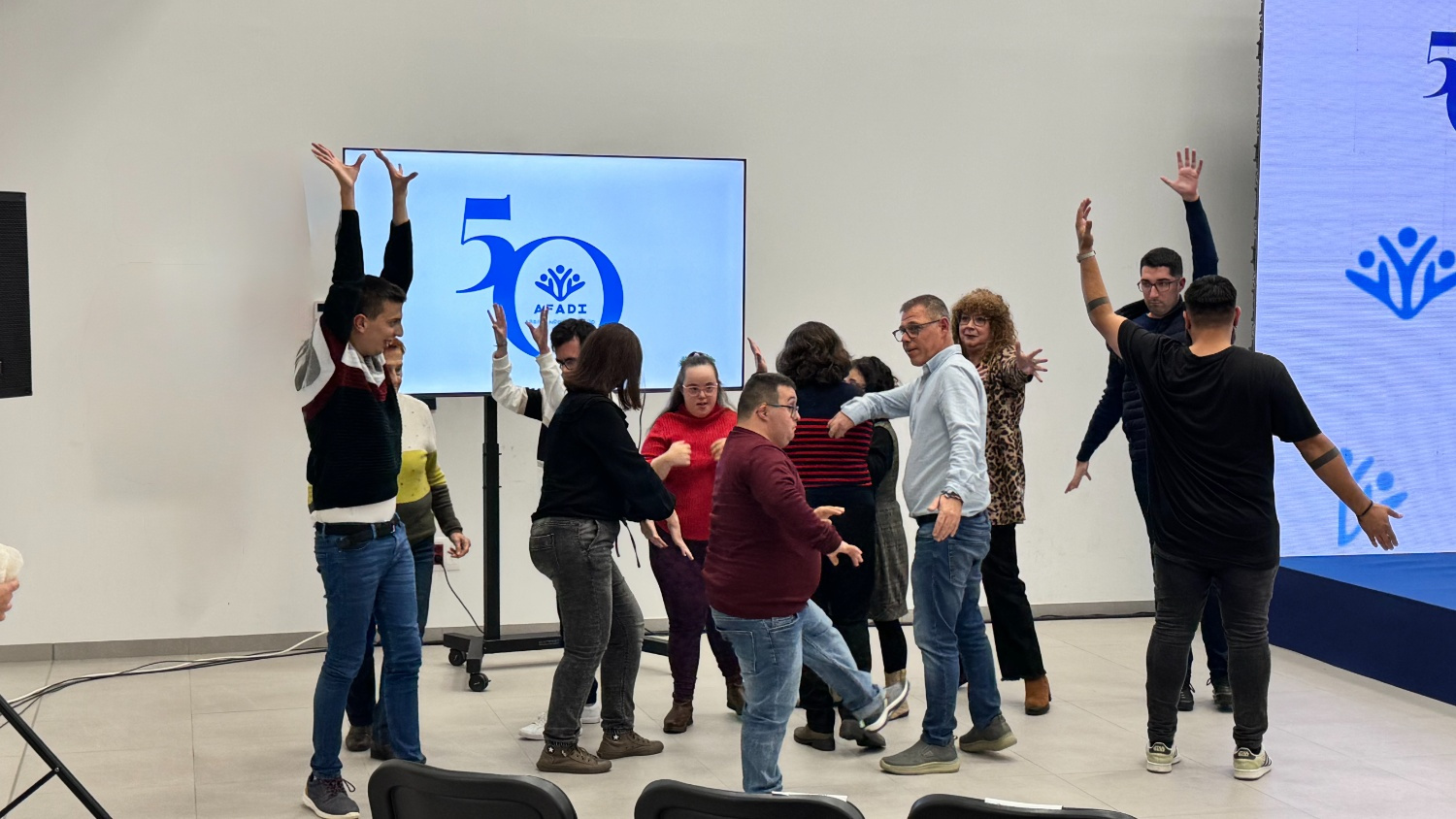 Tras ese primer latido emocional, un segundo vídeo recorrió la historia de AFADI, uniendo pasado, presente y futuro. En él se evidenció la necesidad de nuevos espacios, más recursos y proyectos innovadores para sostener el nuevo modelo de entidad que ya está en marcha: oficinas de vida independiente, respiro familiar, ocio inclusivo los fines de semana, apoyos individualizados y puntuales. No como promesas lejanas, sino como compromisos reales con la comunidad.