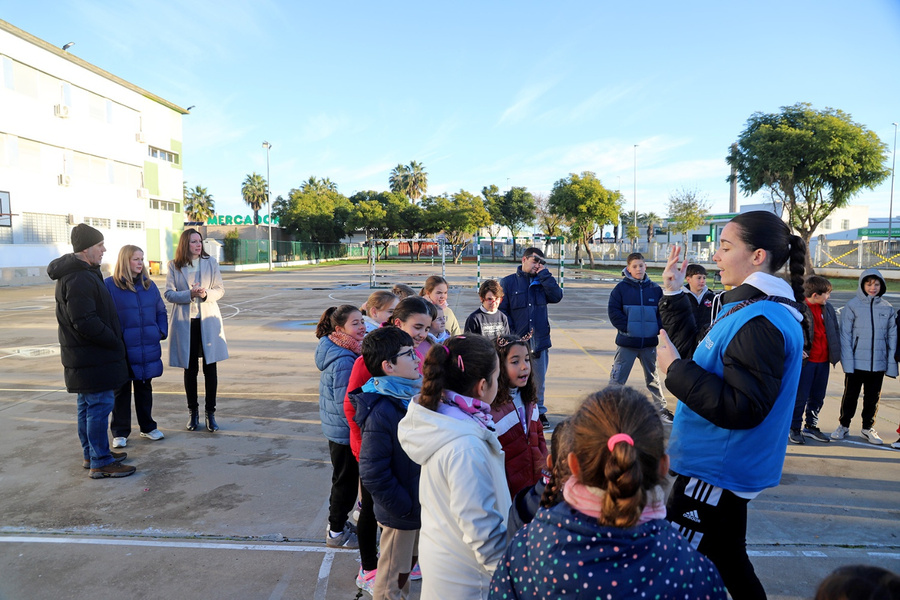 Las delegadas municipales de Juventud e Infancia y de Igualdad, Mercedes Bueno y Noelia Ramírez, respectivamente, han visitado a los participantes en el colegio.
