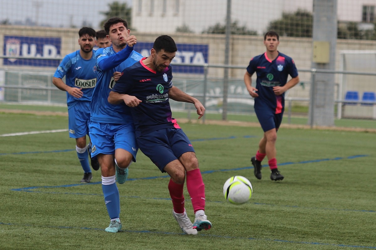 El conjunto de Juan Carlos Falcón intentó desperezarse, intentó acercarse a los dominios de Iván Gaviño, pero el dominio de la Unión Deportiva Rinconada era absoluto. Eso sí, se iba a poner a prueba al filo del descanso, cuando el colegiado Fernández García mostraba la segunda cartulina amarilla a Migue Rubio por una falta en zona de tres cuartos, que era la segunda del defensor ex del Torreblanca.