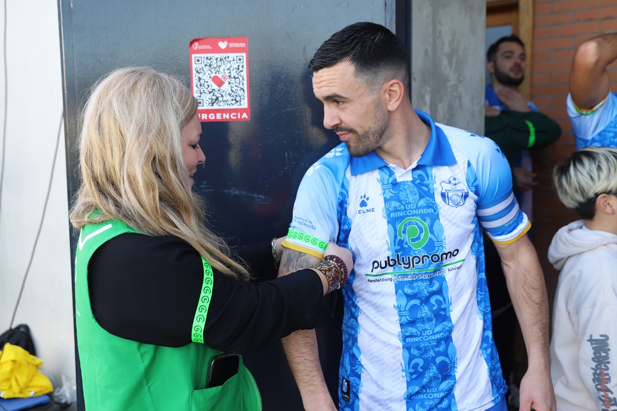 Antes del comienzo, la Asociación Española contra el Cáncer organizó un acto, a través del cual se dio visibilidad al trabajo que realizan y todos los integrantes de ambos equipos y personas que estaban alrededor del campo, como medios de comunicación, delegados y encargados de las instalaciones, lucieron un brazalete con el emblema de la asociación. En estos tiempos, casi todo el mundo tiene un familiar, amigo o conocido, que lucha contra esta enfermedad o ha luchado, contra ella, ganando o perdiendo la batalla, por lo que reivindicar mayor investigación para tratar de acabar con ella siempre es algo positivo. En el Ramos Yerga estaba Mercedes Perza, delegada local de la Asociación, que tuvo la oportunidad de hablar a través de las ondas de Regional Deportivo, de Radio Rinconada, y Adrián Martínez, colaborador de la entidad.