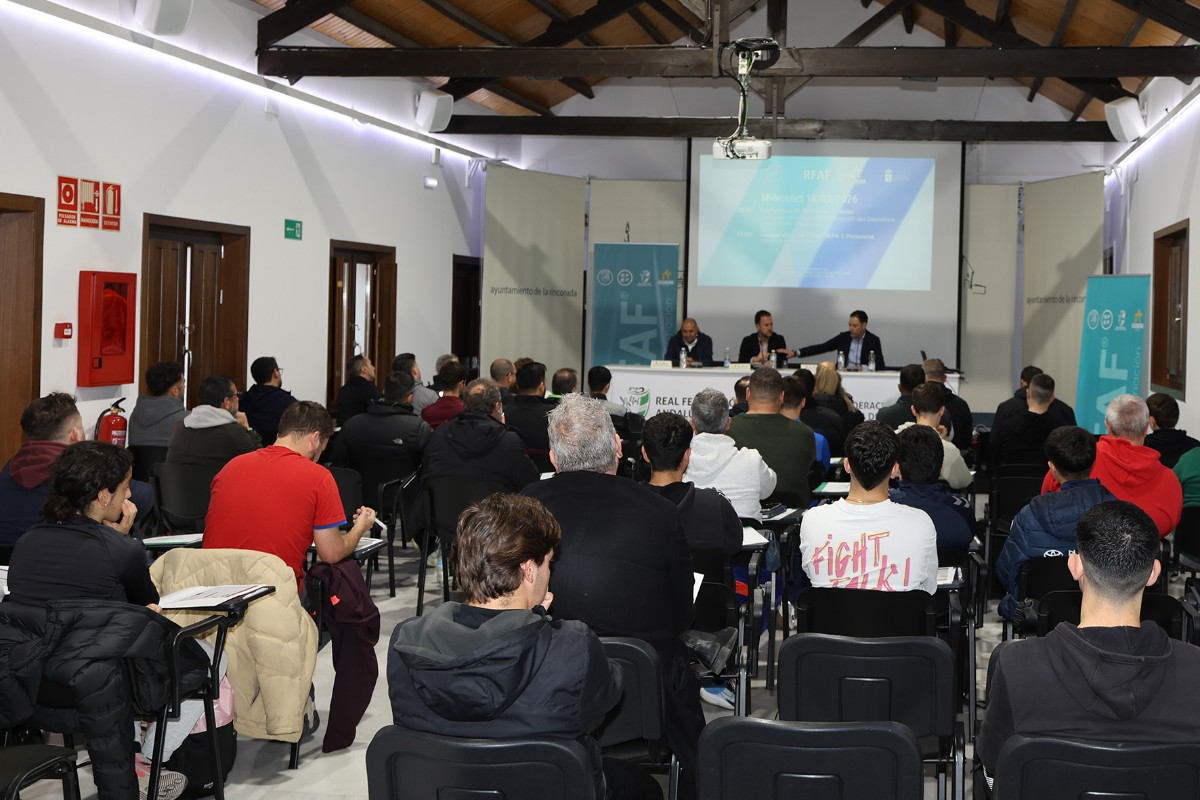El delegado de Protección del Menor de la RFAF se reúne con las canteras futbolísticas del municipio para trasladarles los valores que deben imperar en el deporte y contribuir a eliminar la violencia en los estadios, en una jornada en la que comienza la formación para los futuros entrenadores UEFA C, que se desarrollará en el municipio durante los próximos seis meses y que es la primera vez que se imparte fuera de la capital