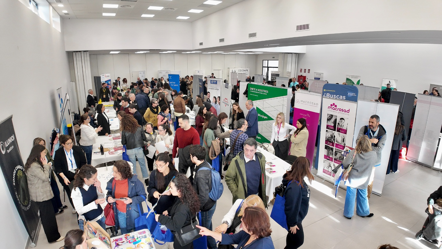 En la zona expositiva y de empresas, los asistentes han participado en talleres de competencias, simulaciones de entrevistas con realidad virtual y han contactado con las empresas participantes.