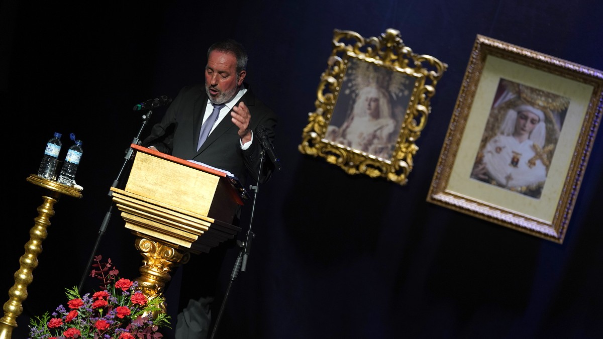 La Semana Santa de 2026 ya ha comenzado en La Rinconada. Lo ha hecho a través de la palabra y los sentimientos de Joaquín Jesús Simón Olmedo, antiguo costalero, capataz, saetero, pero sobre todo, cofrade. El Teatro Antonio Gala acogió en la mañana del IV Domingo de Cuaresma, conocido como domingo de Laetare, la 43 edición del Pregón de la Semana Santa de La Rinconada.