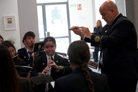 La música formó parte también del pregón con la participación de la Banda Municipal Cristo del Perdón, a quien el pregonero le dedicó un sentido capítulo mientras los músicos interpretaban los compases de la marcha ‘Espíritu Santo’. Música que también se hizo patente en el piano del pequeño David y en la propia saeta interpretada por el propio Olmedo, dedicada a la Virgen de los Dolores.