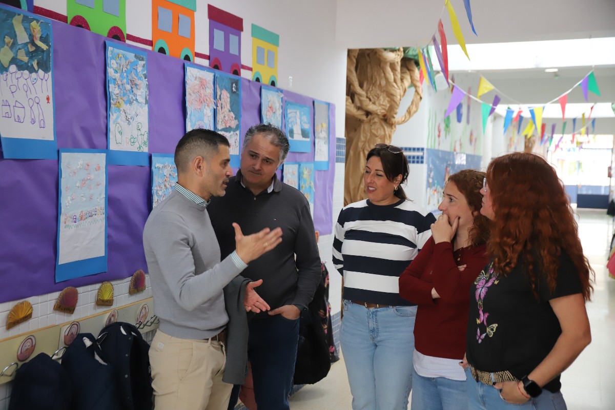 El director del CEIP, Moisés Antequera, la presidenta del AMPA, Sara Rodríguez y la secretaria y vocal, Esperanza Martínez y Anabel Bocanegra, respectivamente, dialogaron con el delegado en su visita de los diferentes proyectos que les ocupa y están desarrollando en el centro educativo. Asimismo, hicieron un recorrido por el colegio para ver cómo lucen sus pasillos, con una bonita decoración, realizada por el AMPA, que alude a elementos de la naturaleza, temática que están trabajando los alumnos y alumnas en su Semana Cultural.