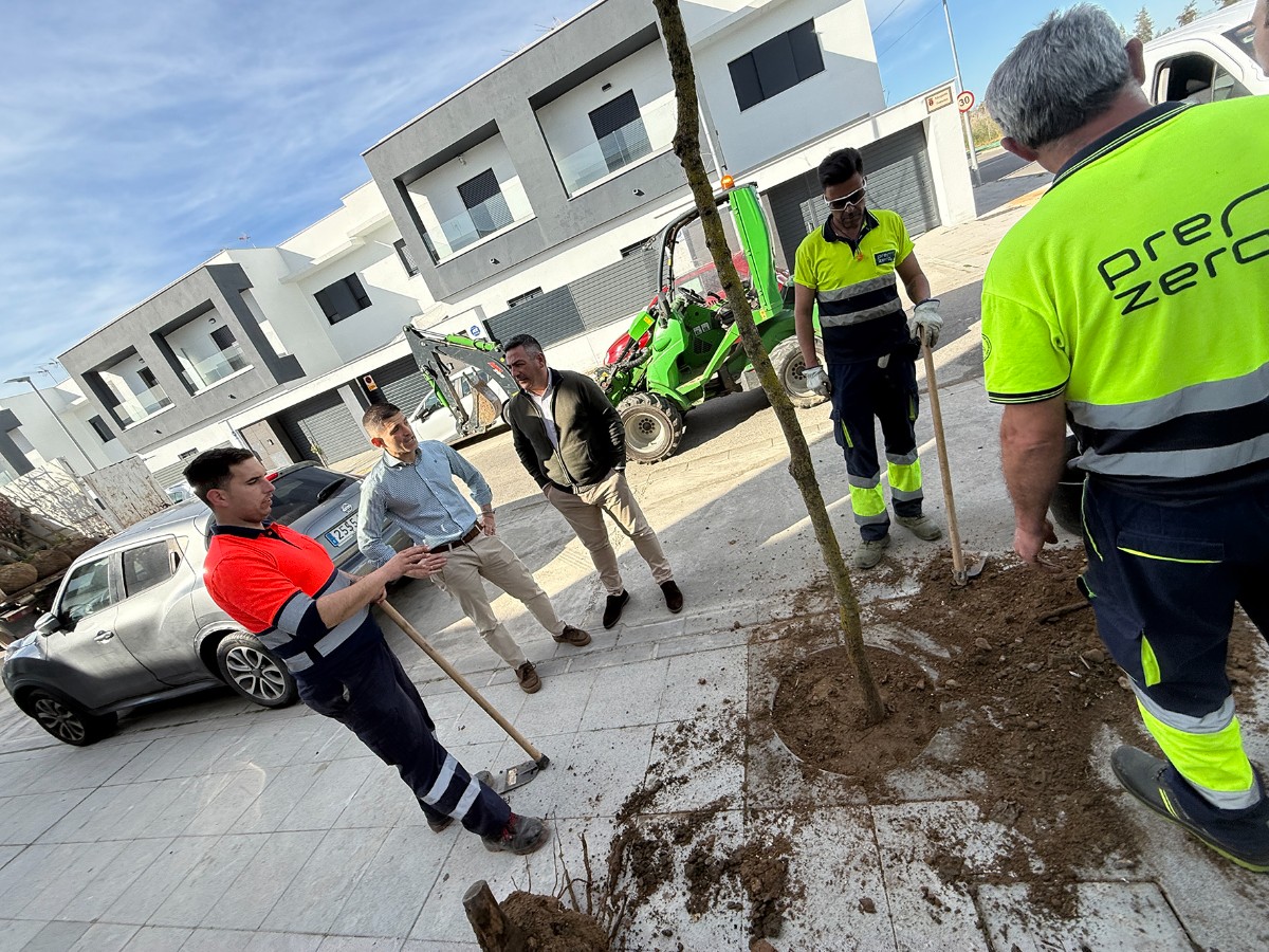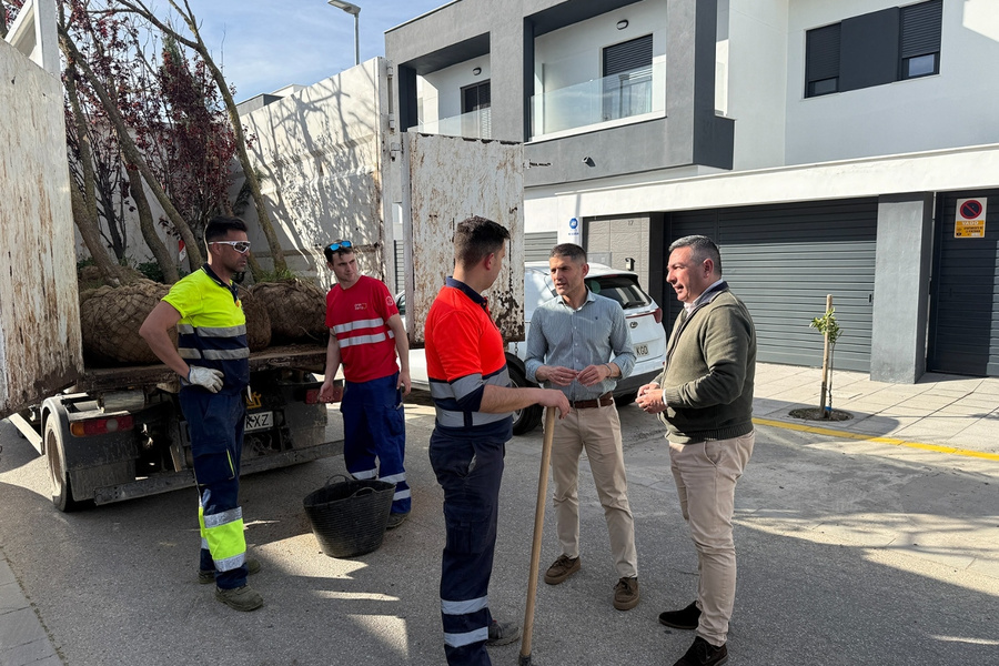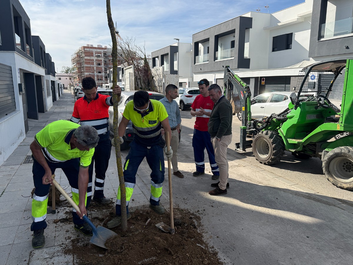 “En estos momentos estamos inmensos en una nueva fase del Plan Árbol. Se están sembrando en torno a 300 ejemplares de especies autóctonas en distintas calles y parques del municipio, incidiendo especialmente en aquellas zonas que fueron afectadas por la borrasca del mes de enero”, destaca el delegado de Infraestructuras Públicas, Rafael Reyes. Recientemente, se ha actuado en diferentes centros educativos, en el parque de Las Graveras, en la Avenida de La Unión y, ahora, en la zona de Las Ventillas, donde estuvo presente el delegado de Medio Ambiente, José Manuel Romero Campos, acompañando al edil de Parques y Jardines.