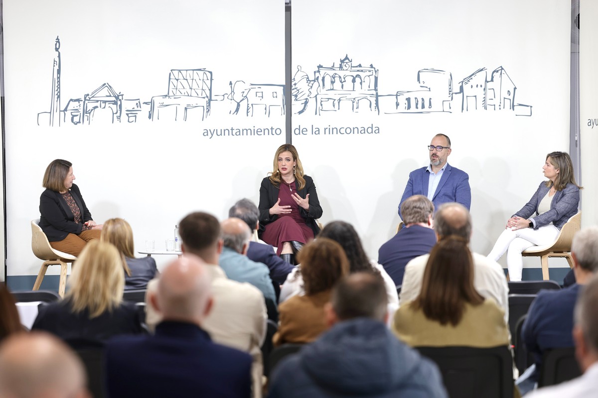 Tras las intervenciones, tenía lugar una mesa redonda en la que participaba Raquel Vega, quien comentaba que "la industria está en nuestro ADN". "Hablo de la ordenación de los territorios, por ejemplo, porque somos una ciudad que revisa por cuarta vez su plan general de ordenación urbana, tenemos una fiscalidad justa, con impuestos por debajo de la media de la provincia, lo que unido al territorio y la situación geográfico estratégica de La Rinconada nos da un potencial futuro de un millón de metros cuadrados, solo de crecimiento en la zona norte, que se puede duplicar en el sur como área de oportunidades, con infraestructuras energéticas que no tiene nadie hoy por hoy en la provincia de Sevilla, o también con acceso de logística, de concentración, de movilidad, lo que hace que nuestra alianza público-privada no sea un brindis al sol, porque los deberes están hechos, y eso evidentemente se va a traducir en empleo, en inversiones que tienen la posibilidad de mantenerse a largo plazo".