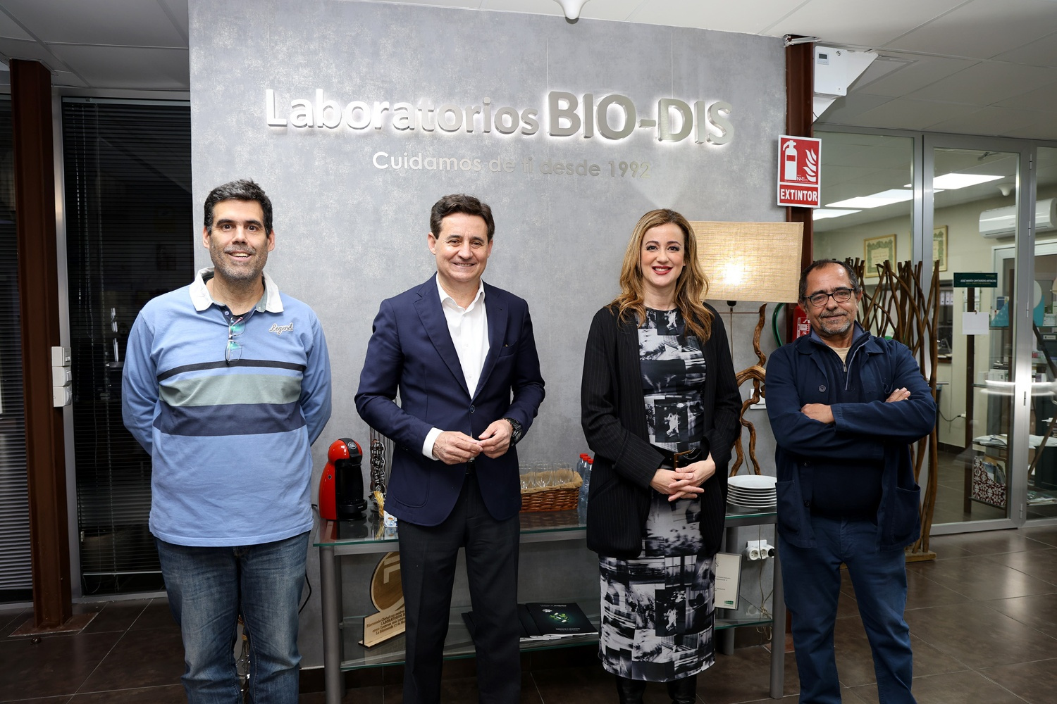 En esta ocasión, la I Teniente de Alcalde y delegada de Economía, Raquel Vega, junto a Daniel Salamanca y Antonio Montaño, tesorero y secretario de Rinconada Global, han visitado la empresa Laboratorio Bio Dis Pharma, ubicada en el parque empresarial Majaravique. Allí fueron recibidos por el CEO y fundador de la empresa, José María Cantarero Artacho.