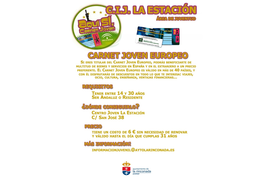 El Centro de Información Juvenil 'La Estación' permite a los jóvenes de entre 14 y 30 años solicitar en sus instalaciones el Carnet Joven Europeo. Con esta tarjeta, el titular podrá disfrutar de descuentos en más de 40 países en actividades y servicios juveniles, viajes, ocio, cultura, enseñanza, comercios asociados, entre otras.
