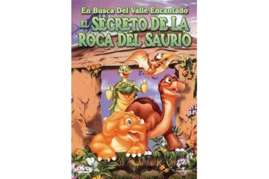 EL SECRETO DE LA ROCA DEL SAURIO.- En busca del Valle Encantado VI: El secreto de la Roca del Saurio. En el lejano horizonte del Gran Valle se encuentra la misteriosa Roca del Saurio y los pequeños gemelos Dinah y Dana corren para encontrarla. Es tarea de Piecito, Cera, Púas y Petrie traerles de vuelta. La leyenda dice que la Roca del Saurio mantienen la mala suerte fuera del Gran Valle. ¿Será esto verdad?