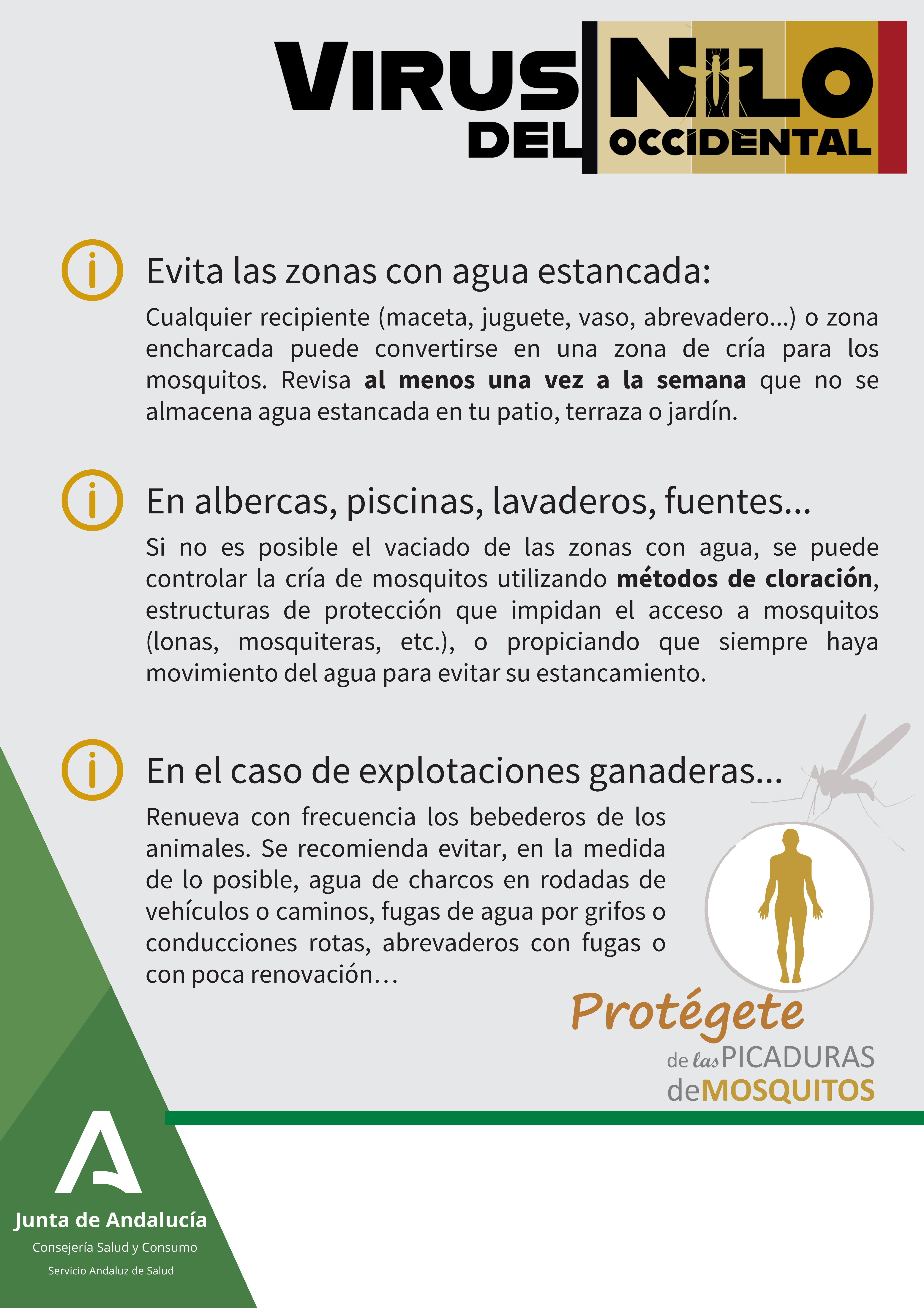 La Consejería de Salud nos ha informado de la existencia de un caso positivo del Virus del Nilo Occidental (VNO) en un ciudadano de la localidad.